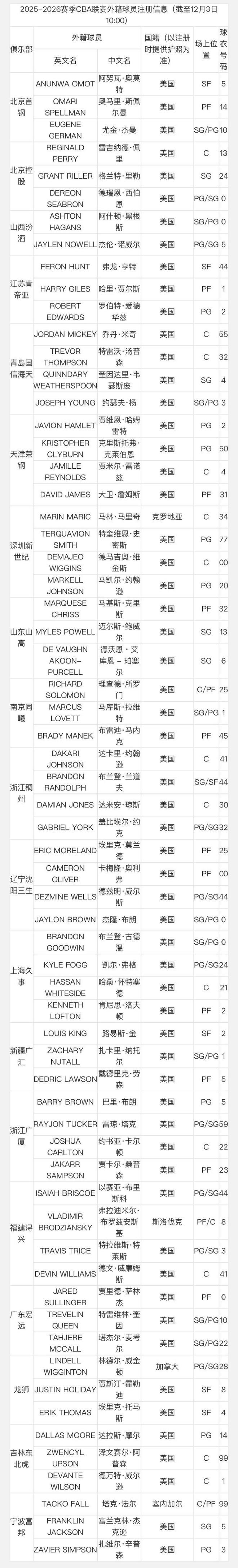 北京时间今日,CBA官网公示了最新的外援注册信息。截至今日10点,CBA已有19支球队完成外援注册,仅剩此前深陷欠薪危机的四川男篮尚未注册。相关阅读: